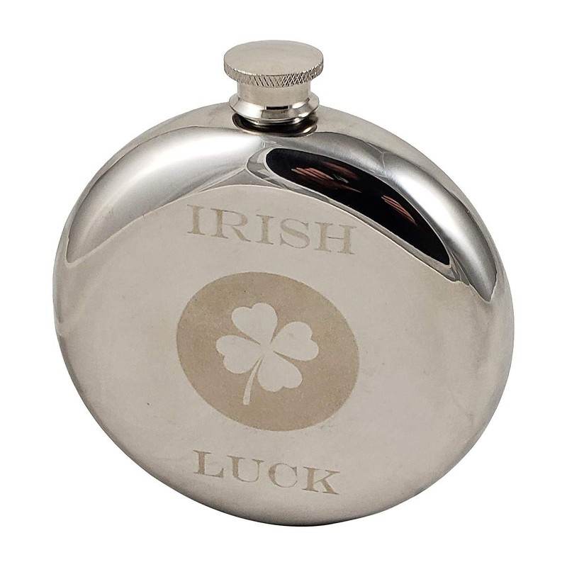 - Stylishly designed flask holds 10 oz of your favorite beverage engraved with a lucky clover and the words "IRISH LUCK".