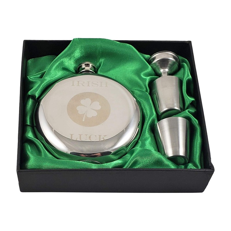 Irish Luck 10 Ounce Round Flask Gift Set-Great Ireland Themed Gift