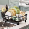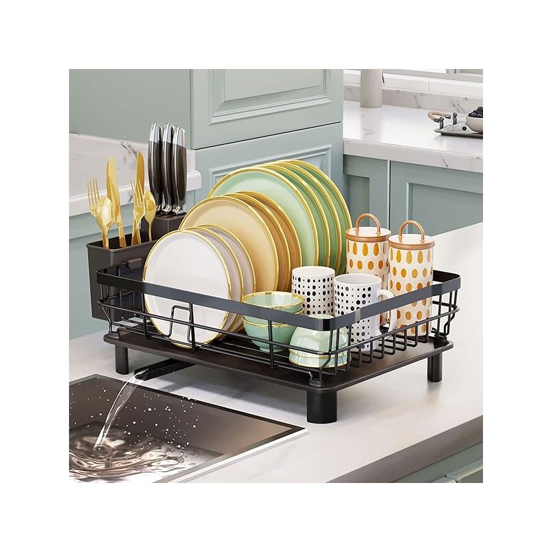 Iron Dish Drying Rack with Drainboard Dish Drainers for Kitchen Counter Extendable Spout Strainers with Utensil Holder and Knife Slots, Black