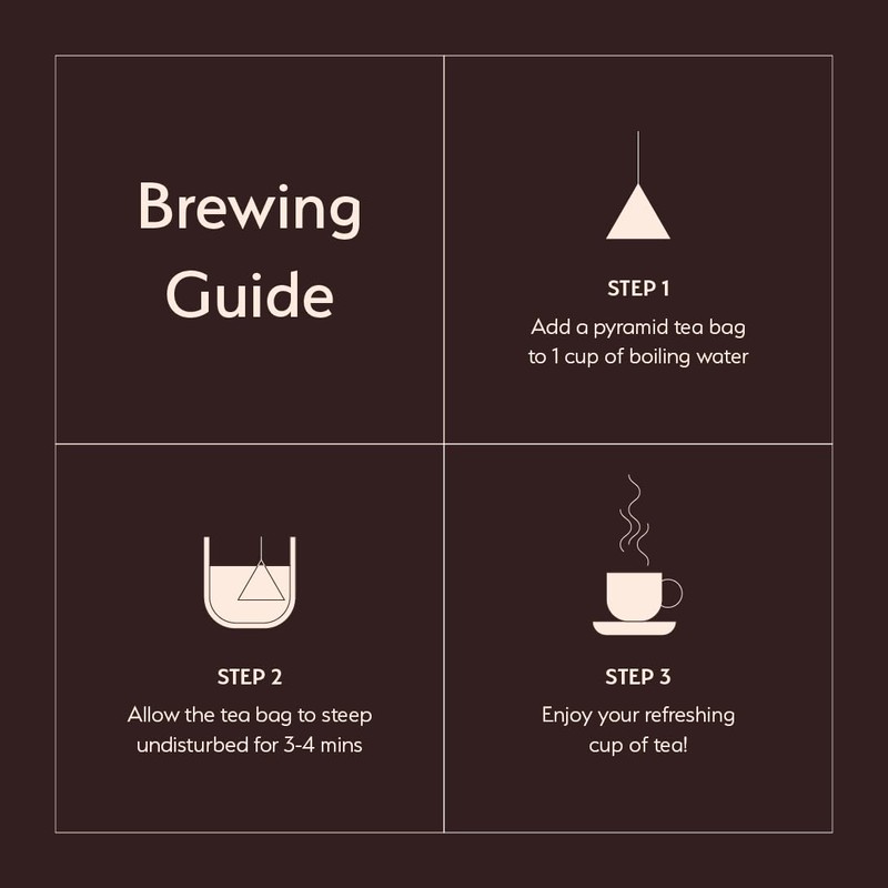 - Steeping Notes: For one cup of tea, steep one teabag in hot water for 2-3 minutes. Add honey if you like your cup sweet.