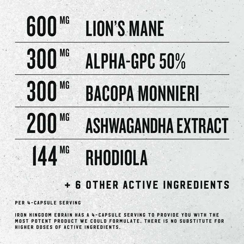 IRON KINGDOM ebrain Premium Nootropic. Increases Motivation and Focus, Alpha-GPC, Bacopa