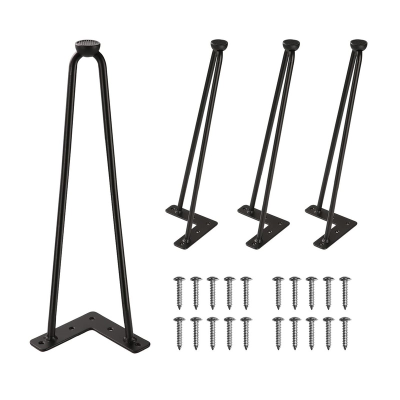 - Easy to Install : The plate of black industrial hairpin legs has 5 pre-loading holes. Just fix the metal legs for coffee table or other furniture project top and tighten the screws. Each table legs for furniture set of 4 comes with stainless steel screws that are durable and won't break. The non-slip rubber leg pads can protect your floor, you can put the hairpin furniture anywhere in your house.