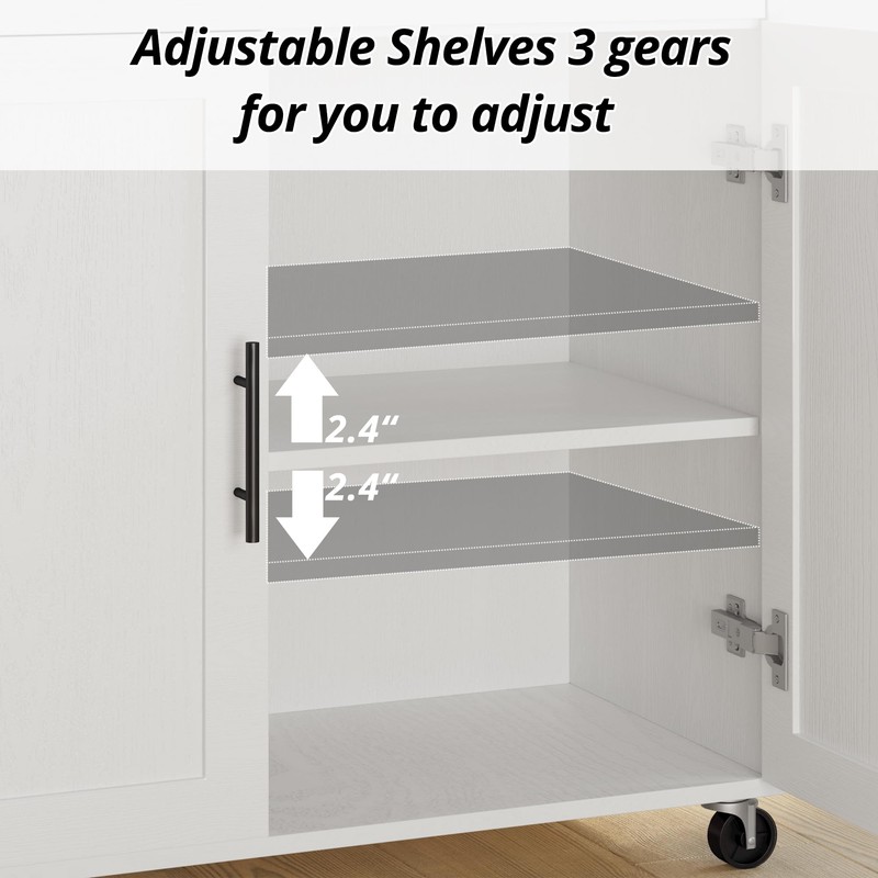 • With Adjustable Shelf -The interior shelves in cabinets can be adjusted to 3 heights to meet dissimilar storage requirements, suitable for wine bottles, kettles, and large pots.