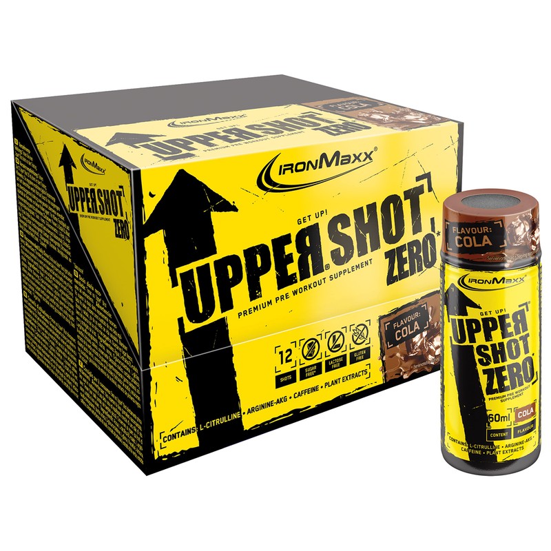 IronMaxx Upper Shot Zero - Cola 12x 60ml | Pre-Workout Shot mit u.a. L-Arginin, L-Citrullin Malat, Taurin und Koffein | Zuckerfrei und in vielen Geschmacksrichtungen