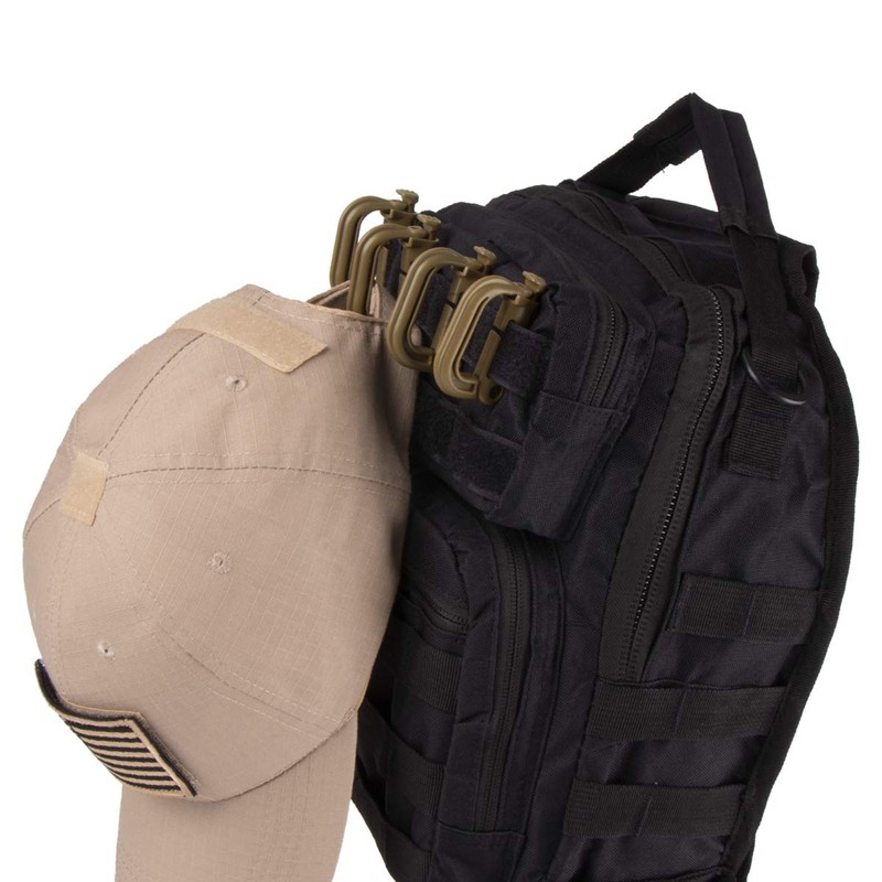 • Size: Approx. 2" (L) x 1.5" (W), opening up to 1”. Attached to tactical vest, hiking backpack or other equipments with molle system, for attachment of lanyards, small gears and accessories.