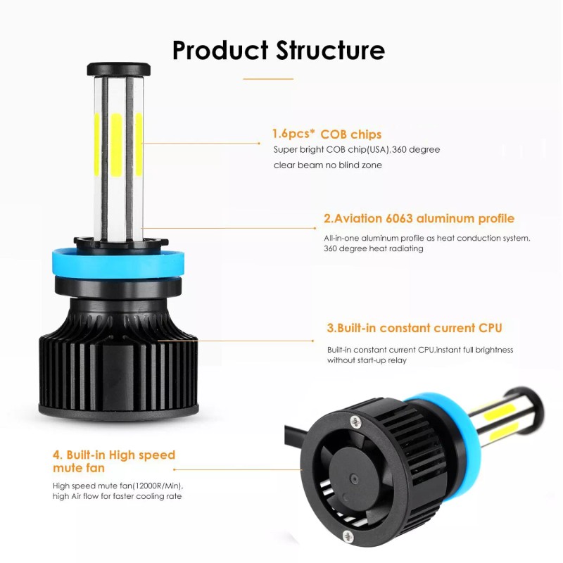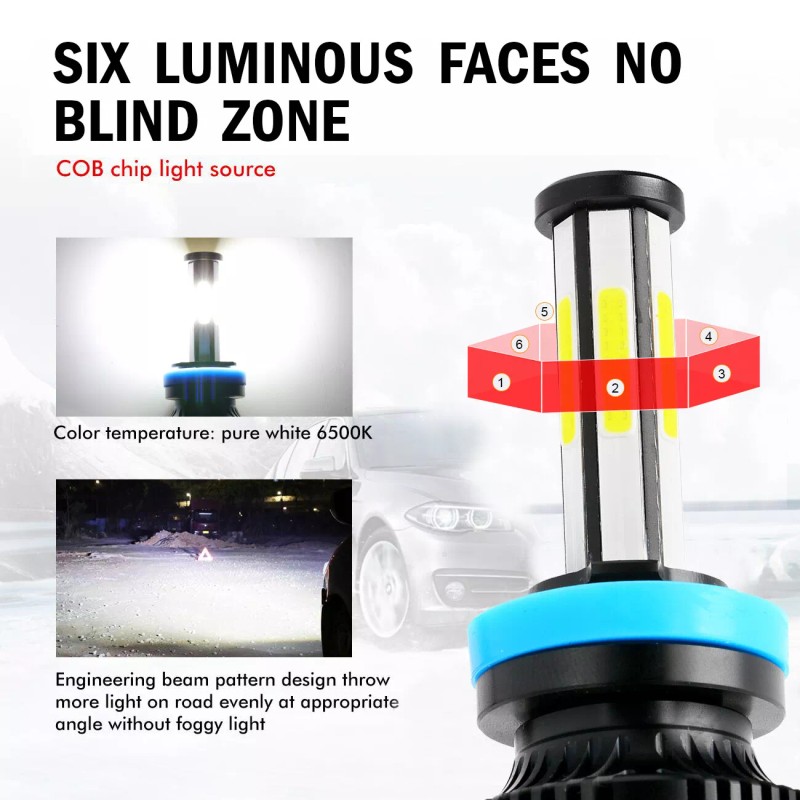 2Pcs Series F-A9 6-sided COB Chip White Light H11 Integrated LED Car Light Headlight 6500K