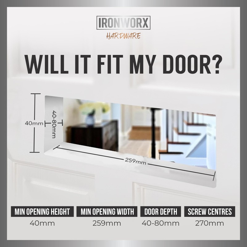 - UNIVERSAL COMPATIBILITY - With a depth of just 56mm, Enigma Slimline letterboxes are designed to integrate effortlessly with all door types and styles. Compatible with UPVC, composite and timber, this slim fit letterbox design is ideal for homes and businesses with a door thickness of 40-80mm.