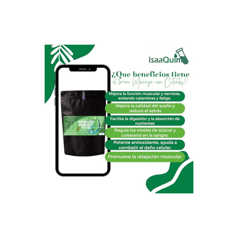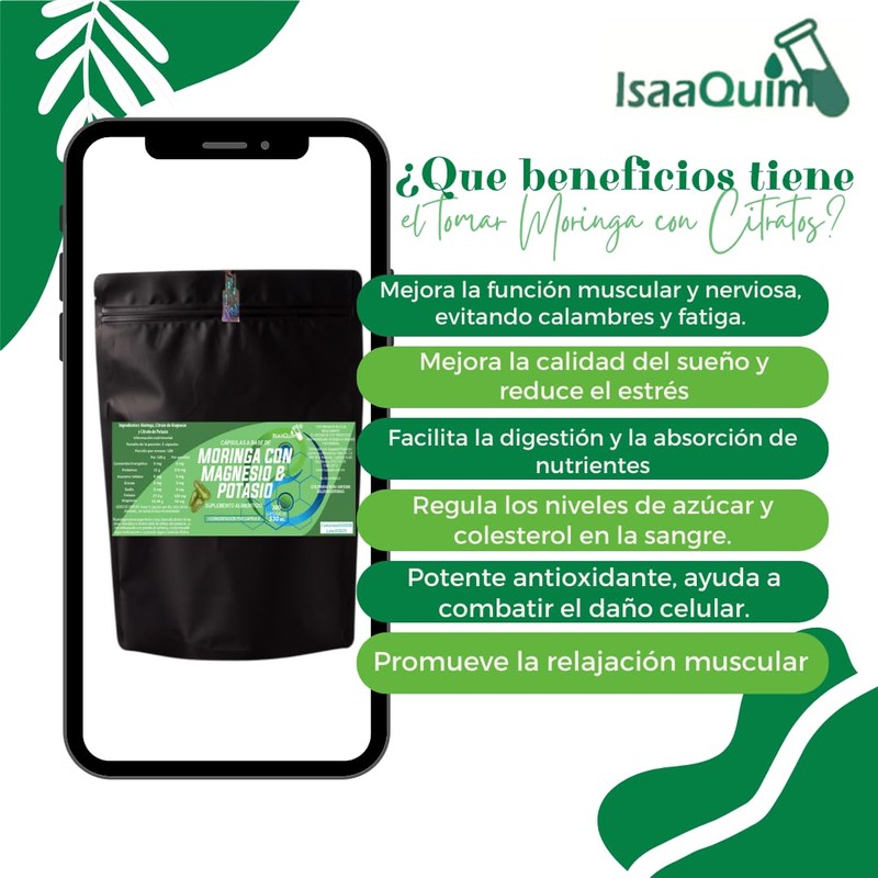 IsaaQuim Citrato de Potasio + Citrato de Magnesio + Moringa 300 capsulas de 530 mg