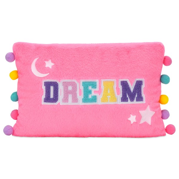 - This super soft and furry plush pillow features a rainbow appliqued reminder to dream and is ready to liven up any space