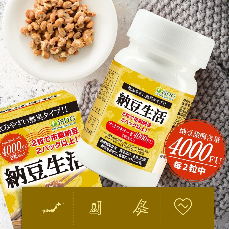 ISDG 納豆生活 ナットウキナーゼ4000FU 180粒/ボトル 3個セット