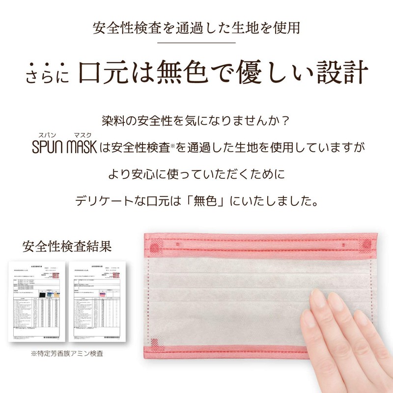 - [Characteristics (Materials)] Spun lace mask is made primarily with water pressure without using binder (bond), and has a luster and feel that ordinary non-woven fabric can. The colors are different at a glance