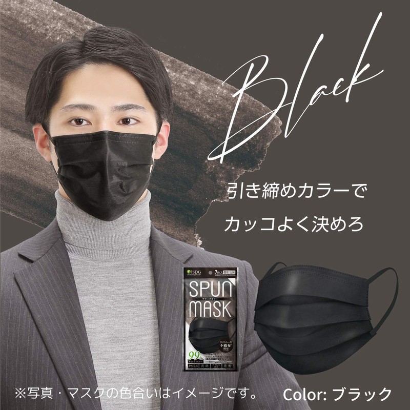 ISDG Dotcom Spunlace Non-woven Color Mask, Individually Packaged, 7 Pieces, Black, 10 Bags