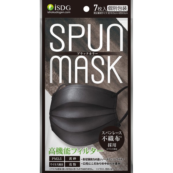 ISDG SPUN MASK Spunlace Non-Woven Color Mask, Individually Packaged, 7 Pieces, Black