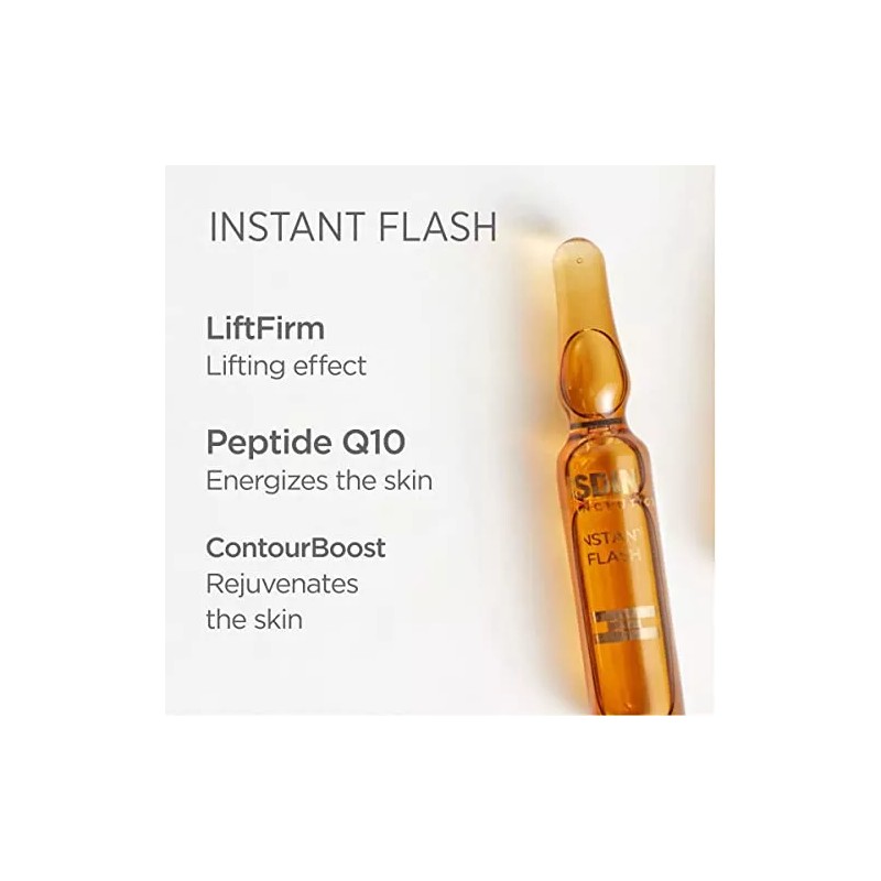 Isdinceutics Instant Flash. Solución facial en ampolletas con un conjunto de avanzados activos que promueven un efecto lifting inmediato y prolongado hasta 8h que rejuvenece la apariencia del rostro.