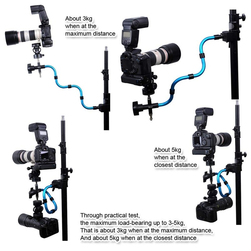 iShoot Cobra-Shaped Photographic Support Articulating Magic Snake Arm Camera Holder Flash Bracket for Large Cameras - Can Load 3-5kg (Blue Cobra-shaped Arm)