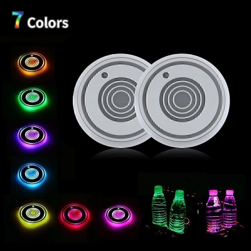 iSincer 2x 7 Colorful LED Car Cup Holder USB Charging Mat Coaster Pad Changing Lights A