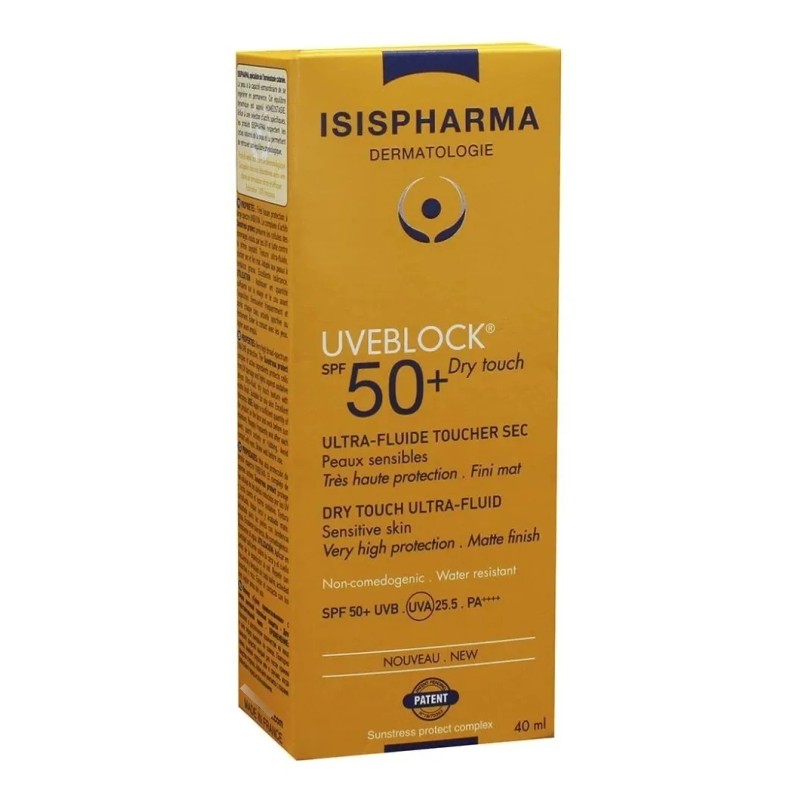 Isis Solar Uveblock SPF 50+ Toque Seco 40 ml. Fluido protector solar FPS 50+. Acabado mate, toque seco. Para piel grasa, sensible, con acné. Hipoalergénico, resistente al agua.