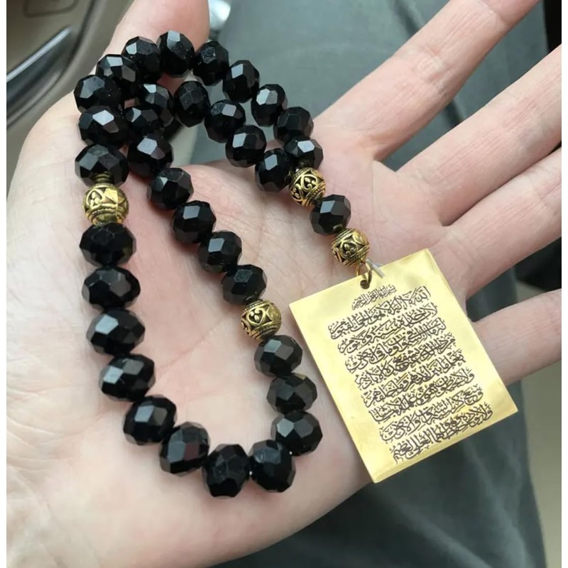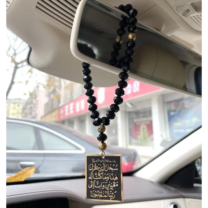 Islamic car Hanging Arabic Travel Dua/Dua al Safar Ayatul Kursi Car Pendant fpr Muslim with 33 Prayer Beads