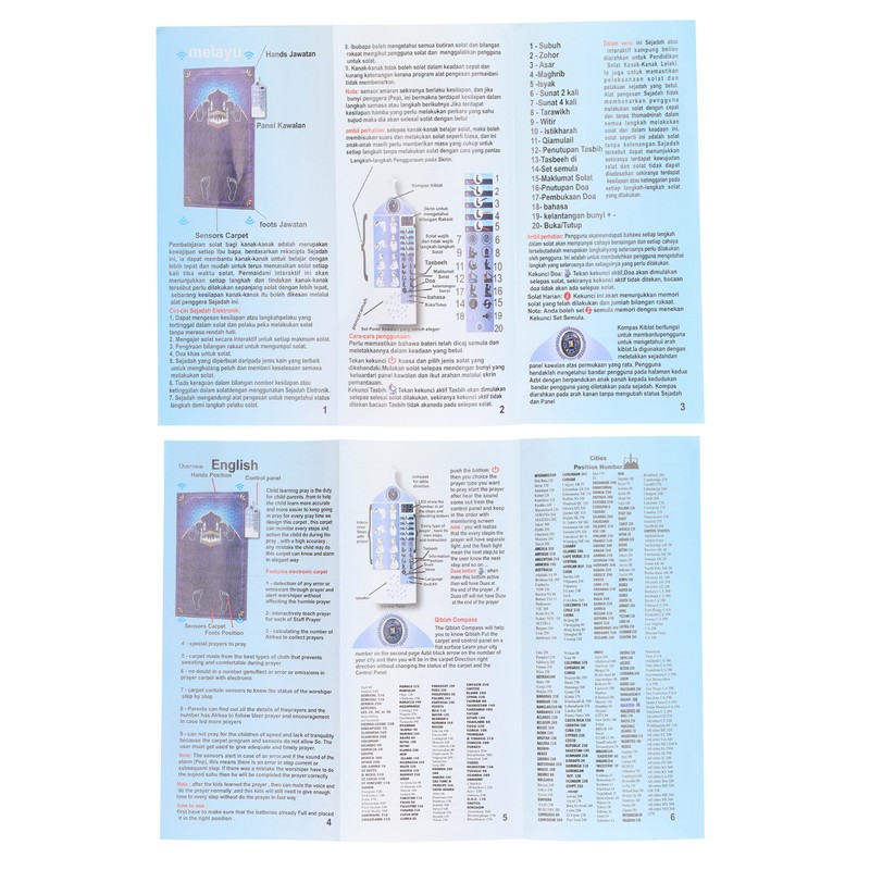 1、Prayer Blanket: New and innovative prayer blanket, because there is no other Muslim prayer blanket on the market that is specially used to teach children to pray in this way. 2、Learning: The prayer blanket can teach children about Salah at different times, various body movements and postures, and what to say during this period. 3、36 Touch Key: The electronic prayer blanket is available in 7 different languages (English, French, Arabic, Malaysian, Indonesian, Turkish and Urdu) and 36 touch sensitive keys. 4、Multi Function: This interactive prayer mat is touch type, with pre recorded keys, which can display sounds by touch, such as prayer time, how to do martial arts, and recite scriptures. 5、Can Be Touched: Islamize Muslim prayer mat and completely turns it into an interactive thing through interesting and pleasant way to pray for Muslims