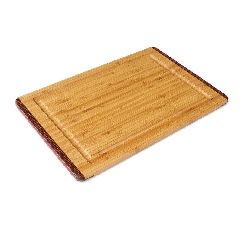 - Bamboo cutting board updated with a food-safe rainbow accent trim of super strong birch wood