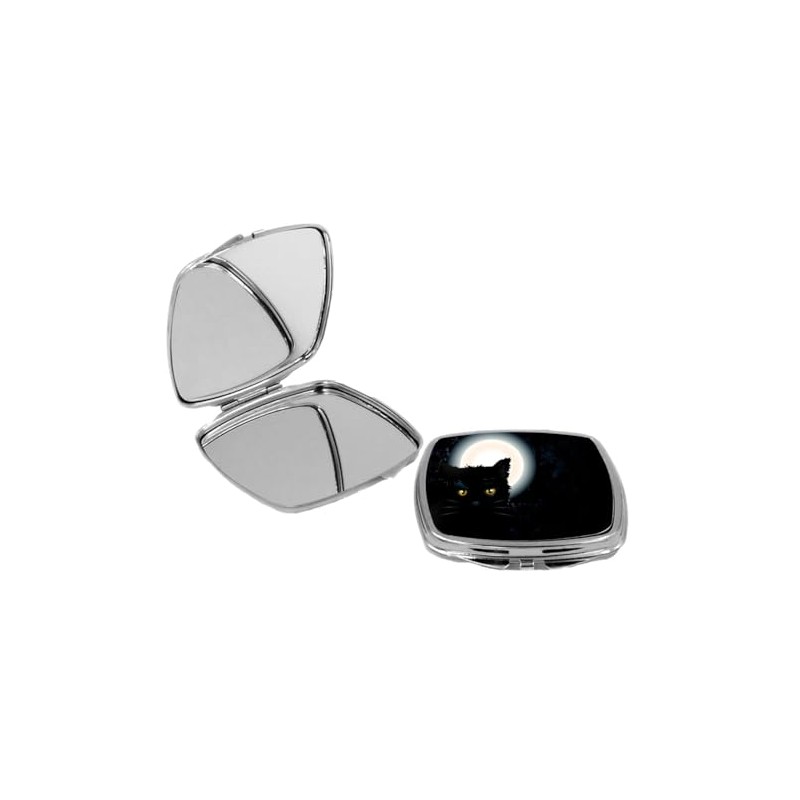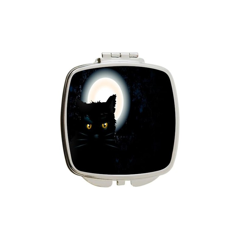 Island Gifting - Black Cat on Full Moon - Square Compact Mirror - Travel Mirror, Blackcatonfu