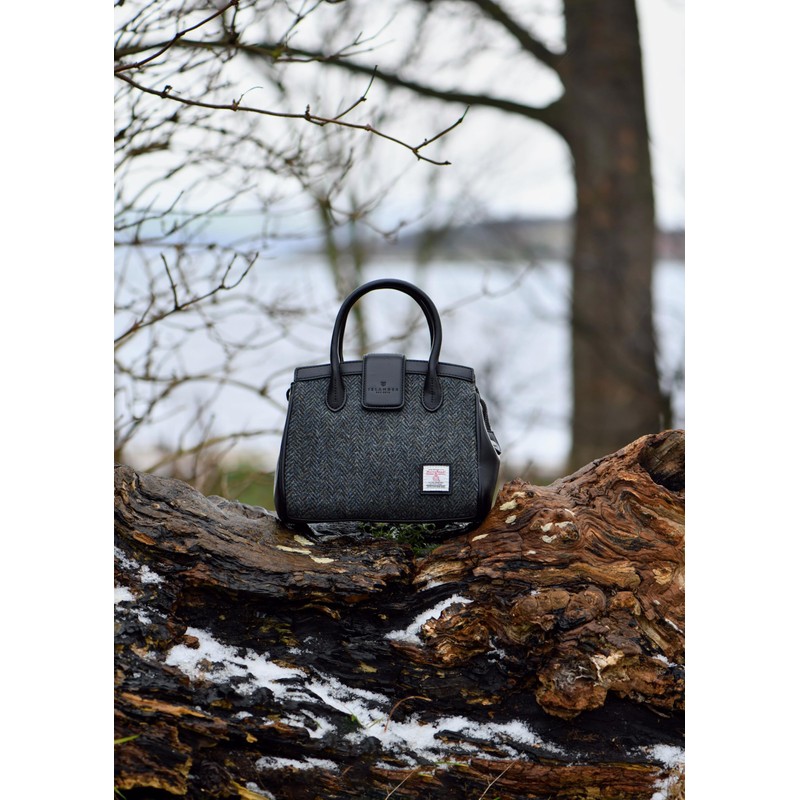 Islander Harris Tweed Mini Tiree Tote, Black-grey Herringbone