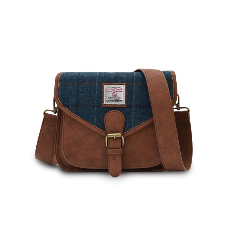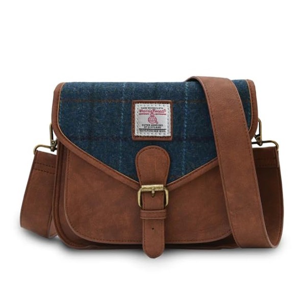 Islander Women Saddle Bag Harris Tweed & PU Leather (Navy Over Check, Standart)