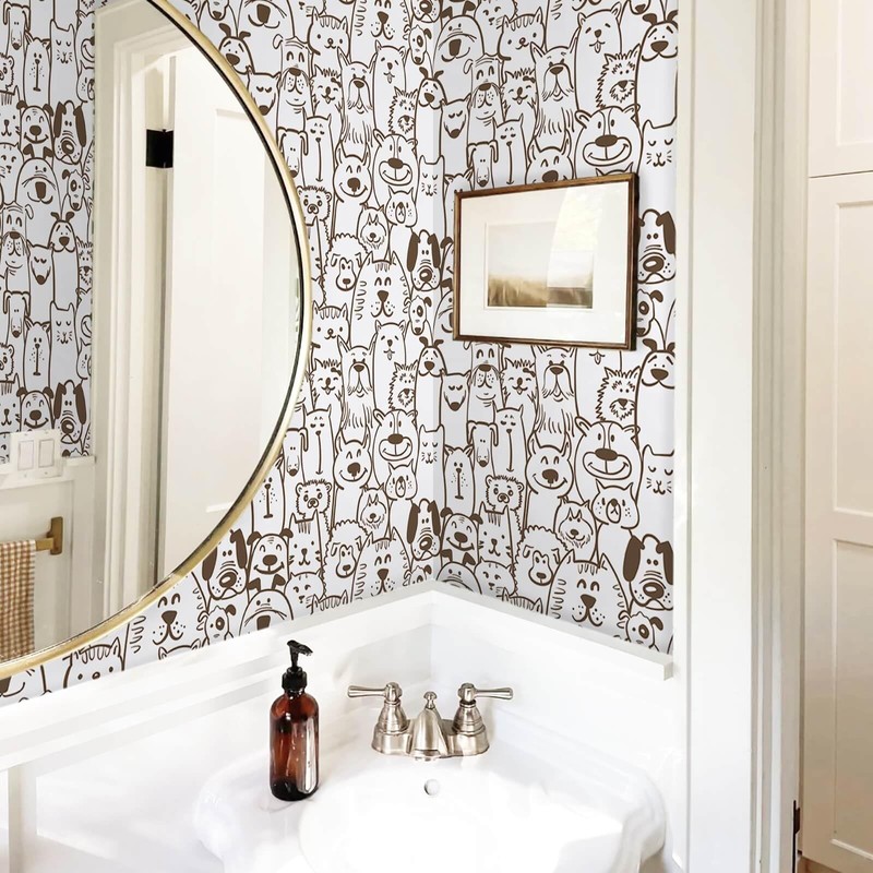 - Adorable Design: This playful dog wallpaper features simple black-and-white lines that bring out cute, whimsical expressions. Its fun and lighthearted style fills any room with a cheerful, inviting vibe. Perfect for children's rooms to fuel creativity, it also brings a burst of energy to spaces like living rooms. The timeless black-and-white design effortlessly complements any style, from modern to retro