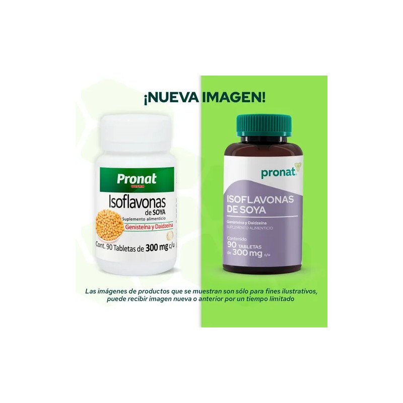 PRONAT ISOFLAVONAS DE SOYA, SUPLEMENTO ALIMENTICIO CON GENISTEÍNA, DAIDZEÍNA Y MEZCLA DE CELULOSAS, 90 TABLETAS DE 300 MG