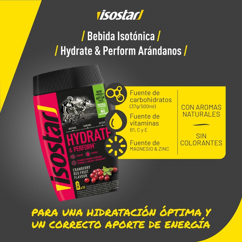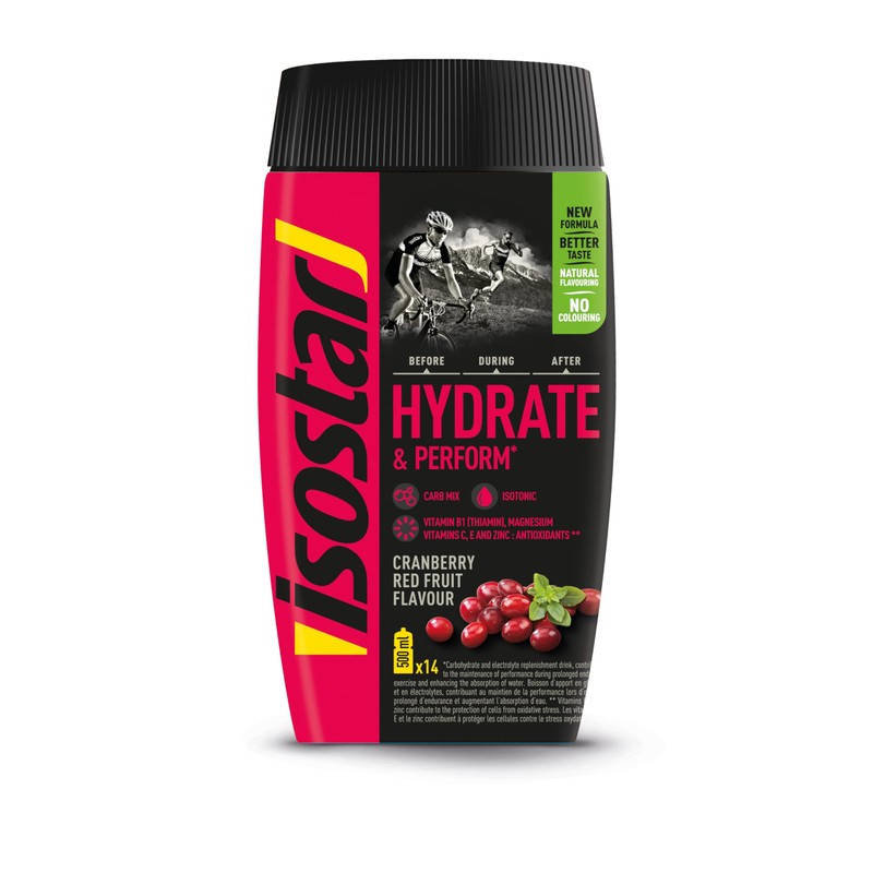 - Dilute powder for isotonic drinks with berry and cranberry flavour, for better water absorption so you can maintain your performance.