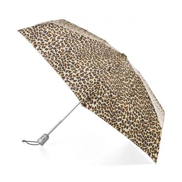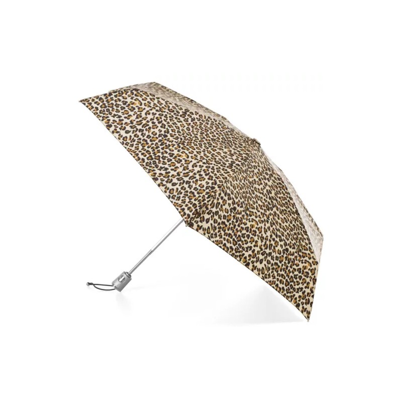 Isotoner totes Mini Auto Open Close NeverWet and SunGuard Umbrella - 8704 - Leopard Spotted
