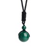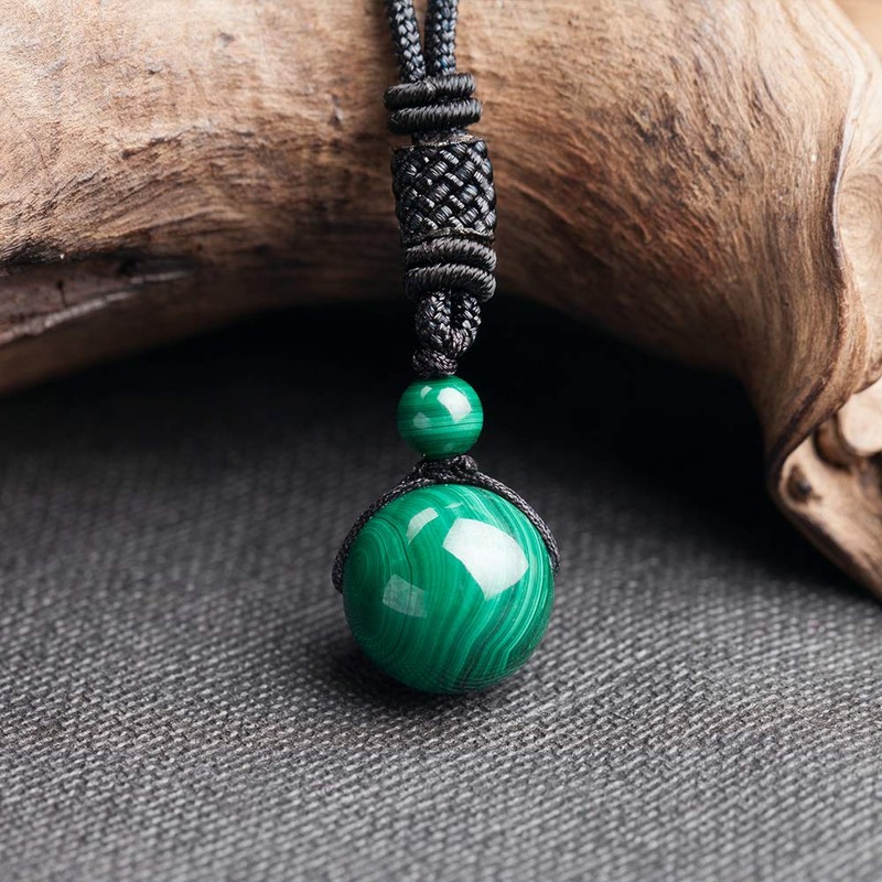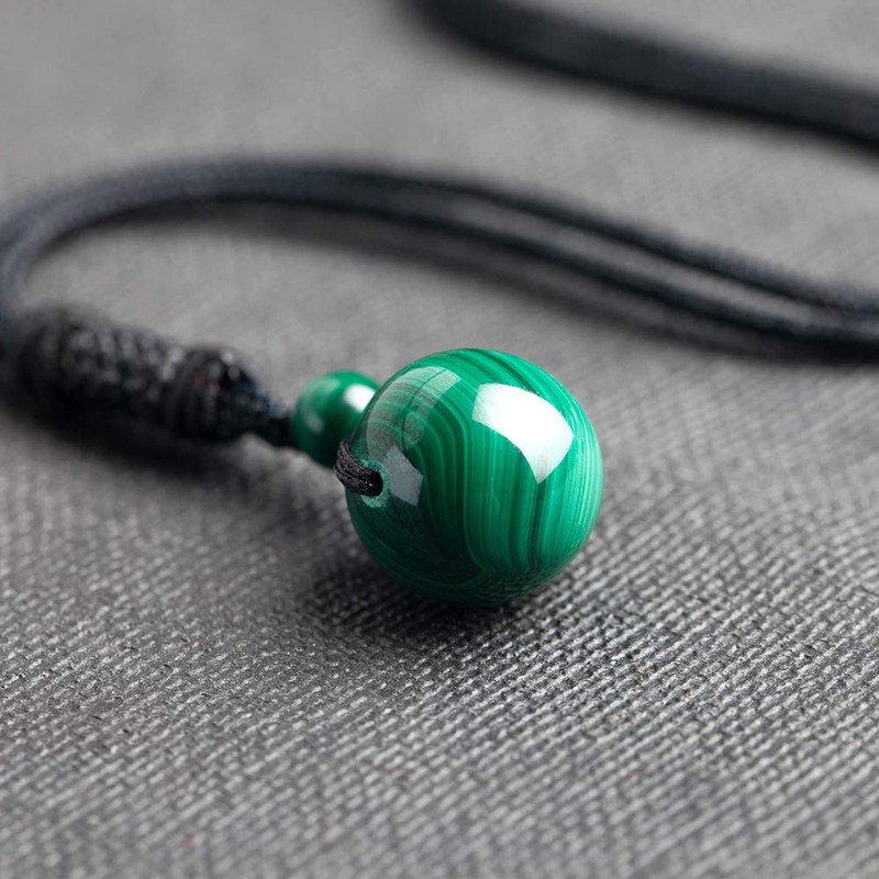 iSTONE Unisex Genuine 16mm Round Beads Gemstone Malachite Pendant Necklace with Adjustable Nylon Cord 24 Inch
