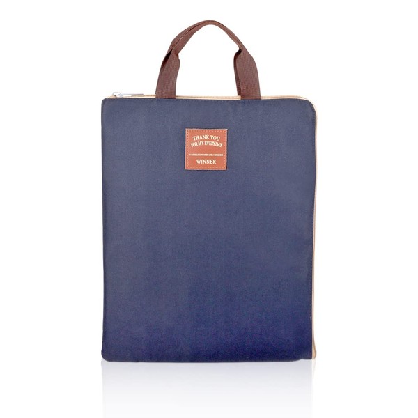 iSuperb A4 ドキュメントバッグ 文書カバー ドキュメントケース iPad収納バッグ 手提げバッグ ビジネス 整理バッグ ナイロン製 オフィス用品 a4 ファスナーケース 男女兼用 旅行用 出張 5色入り (ネイビー)