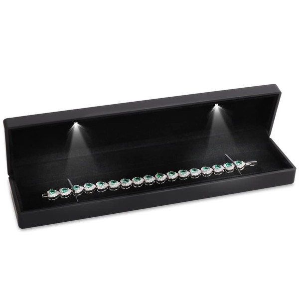 iSuperb LED Light Black Necklace Chain Bracelet Display Case Jewelry Storage Gift Box