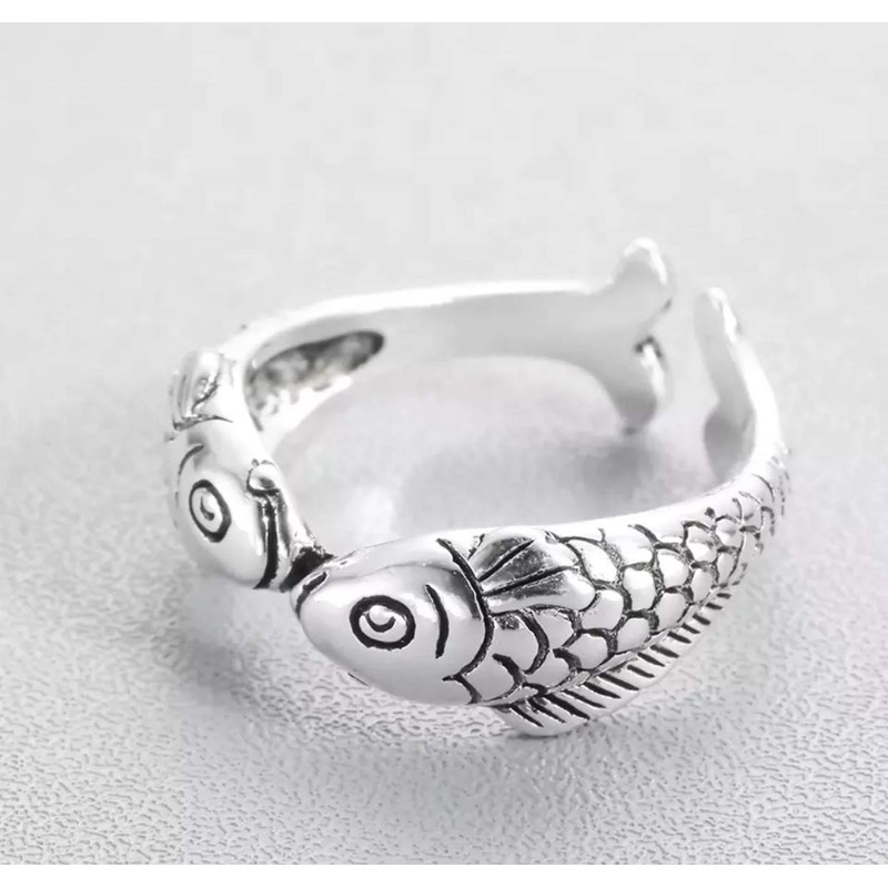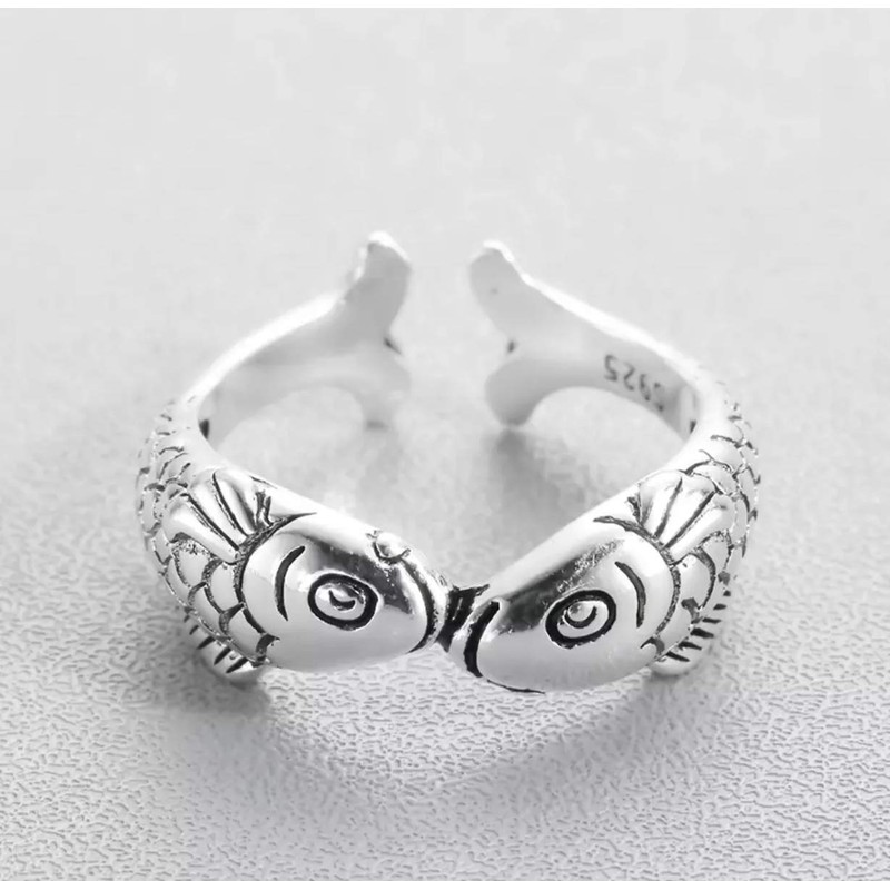 Iszie 925 Sterling Silver Retro Adjustable Lucky 3D Fish Vintage Style Open Women's Rings