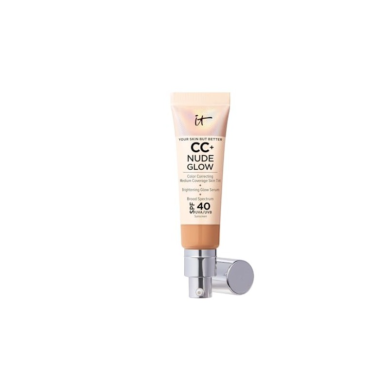 It Cosmetics CC Cream Nude Glow con Protector Solar FPS 40 + Suero Iluminador – Base con Niacinamida, Ácido Hialurónico, Rostro Radiante y Cobertura Natural, 32 ml