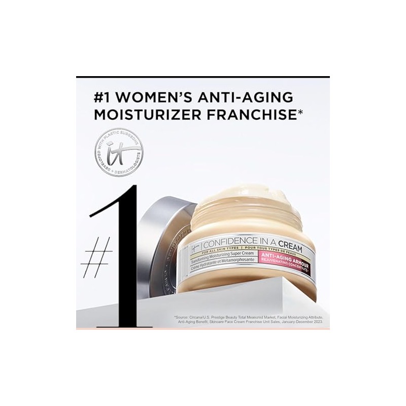 IT Cosmetics - It Cosmetics Confidence in a Cream - Crema Hidratante Facial Antiedad, Hidrata Intensamente, Reduce Visiblemente las Líneas de Expresión Finas con Niacinamida y Escualano. 💎 Fórmula premium para resultados visibles y duraderos. Ingredientes naturales seleccionados y testado dermatológicamente. 📦 Entrega rápida y segura. Ideal para quienes buscan lo mejor en calidad y estilo. Producto auténtico con satisfacción total asegurada. ¡No te quedes sin el tuyo y aprovecha esta oportunidad única!