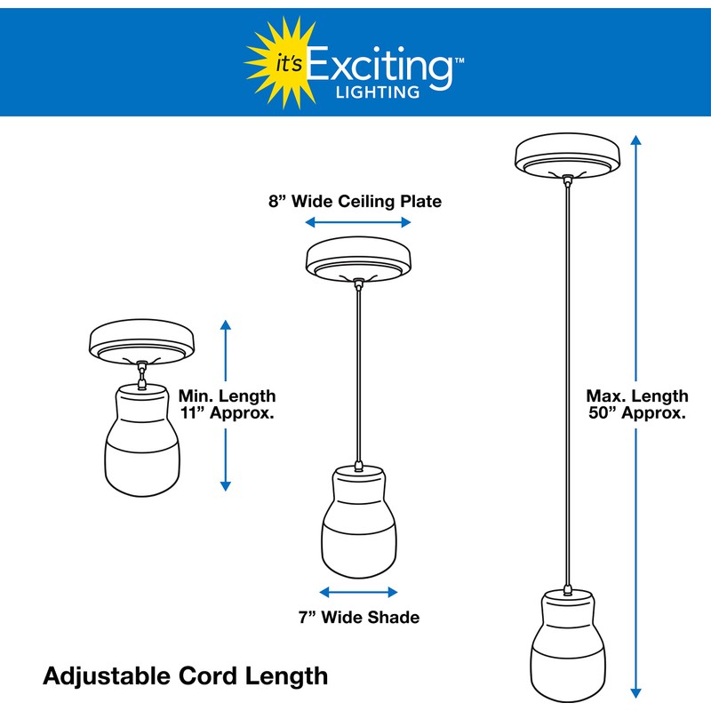 - Includes remote control which can be used for all stages of brightness.4 hour timer with auto shut off to preserve battery life.Includes adjustable cord so it can hang from 8" to 44".Hang anywhere with two toggle bolts (included).Do-It-Yourself Install - no electrician required!
