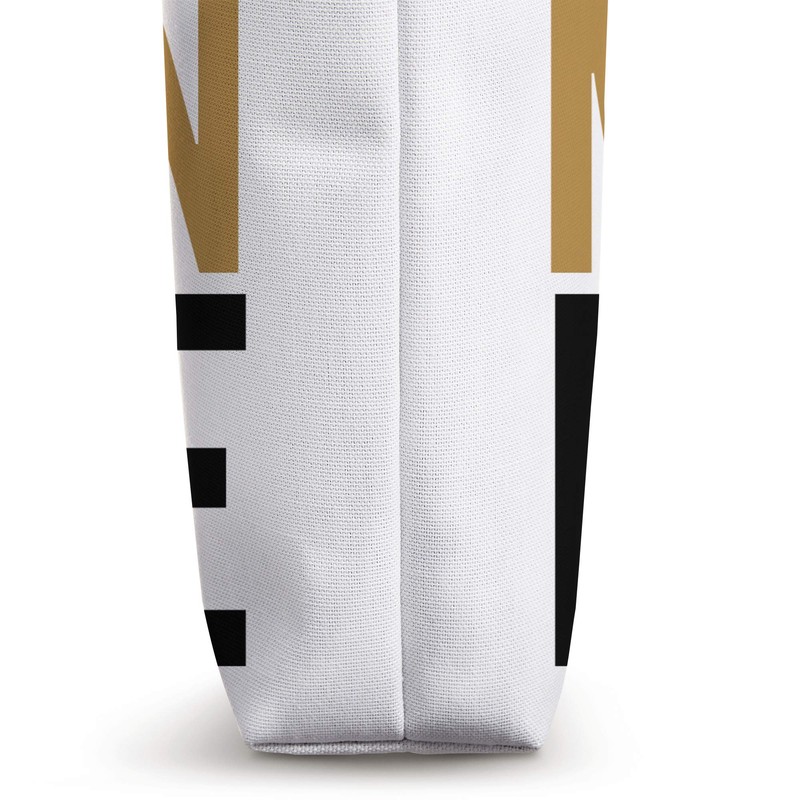 - 16” x 16” bag with two 14” long and 1” wide black cotton webbing strap handles.
