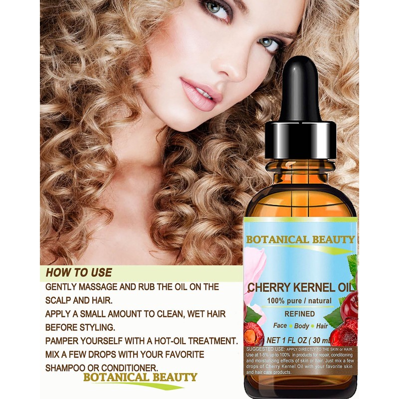 - Botanical Beauty CHERRY KERNEL OIL for all skin types, also for dry, flaky, chapped, cracked, sensitive and mature skin types. Botanical Beauty CHERRY KERNEL OIL Prunus Avium REFINED Cold Pressed Carrier Oil is one the richest natural sources in polyunsaturated fatty acids, including linoleic acid and oleic acid, and vitamin E, Vitamin C as well as a variety of B-group vitamins (vitamin B1, vitamin B2, vitamin B6).