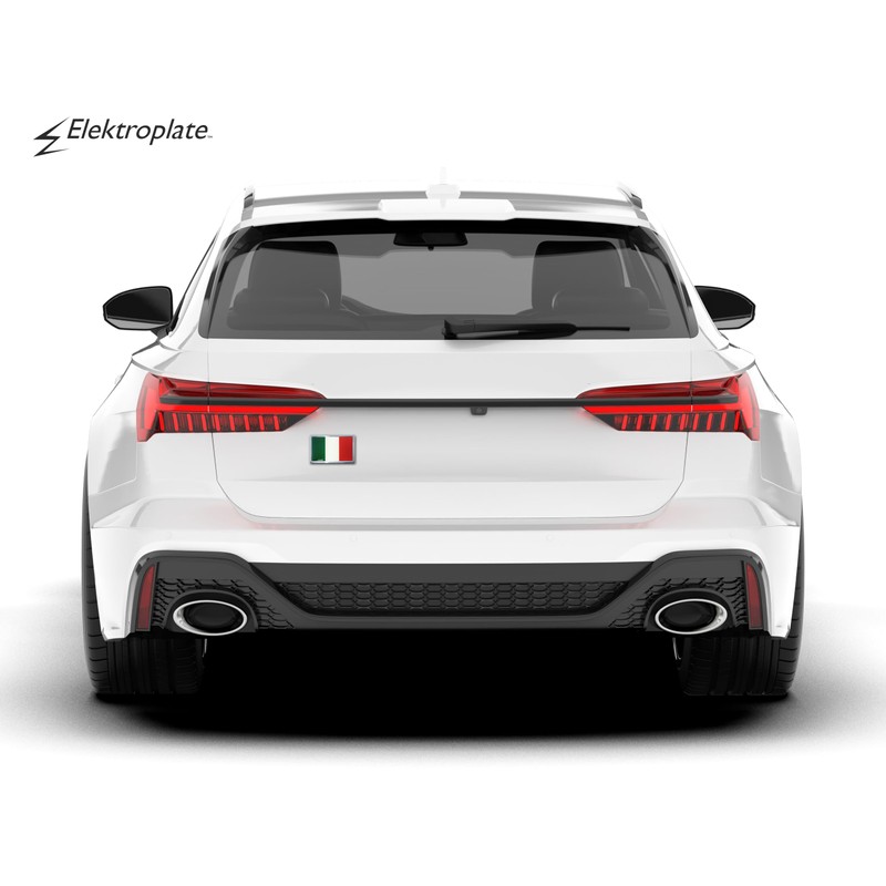 Italian Flag chrome auto emblem ( 3.5" x 2.25" x .125”) by Elektroplate. Base and frame crafted of chrome-plated metal (NOT plastic). Decal within chrome frame is laminated with an 1/8” thick PVC made to withstand any outdoor conditions (guaranteed not to fade or bleed unlike cheap imitations). Attaches via a paint-safe 3M adhesive foam tape. All Elektroplate car emblems are comprised of a chrome-plated metal finish made to withstand harsh outdoor conditions. Your Italian auto emblem will look brand new for years to come (as opposed to cheap imitations in which will fade or chip within months of being on your vehicle). Our high-end auto emblems are the perfect way to showcase your Ireland pride everywhere you drive, a true upgrade from decals and bumper stickers. In addition all Elektroplate chrome emblems are packaged in elegant retail packaging to make a great gift or stocking stuffer.