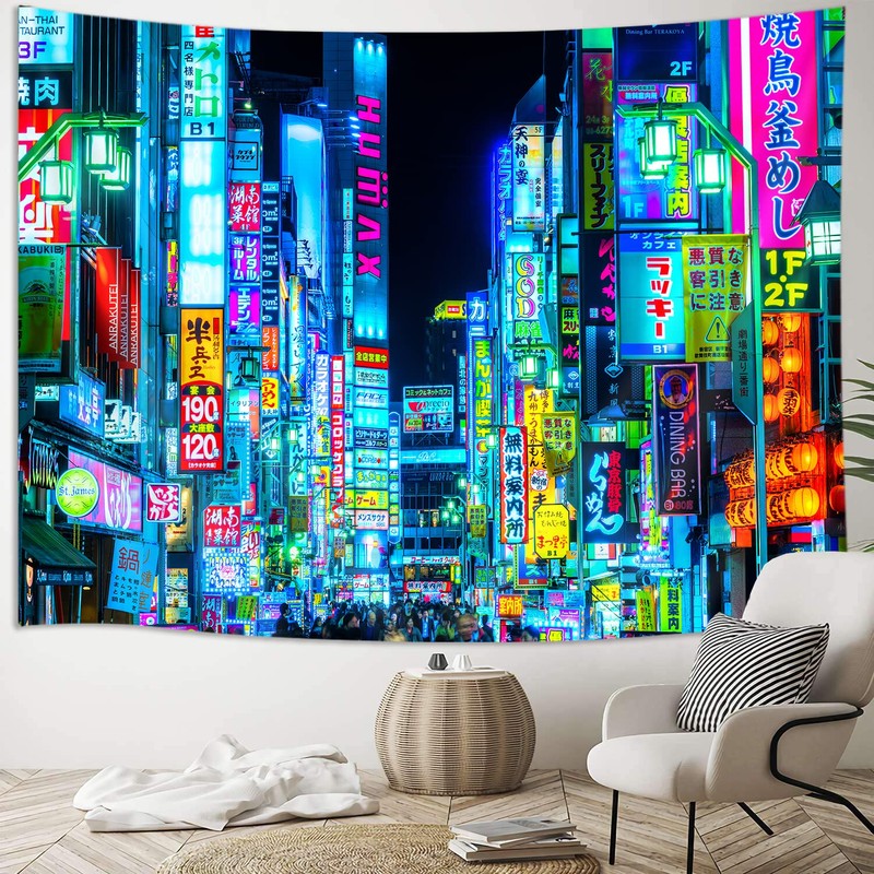 iTapnoom Japanese Anime Tapestry Neon Punk Futuristic City Tapestry Wall Hanging for Men Boys Bedroom Cool Future Japan Tokyo Vaporwave Tapestries Dorm Home Decor 60X40Inch