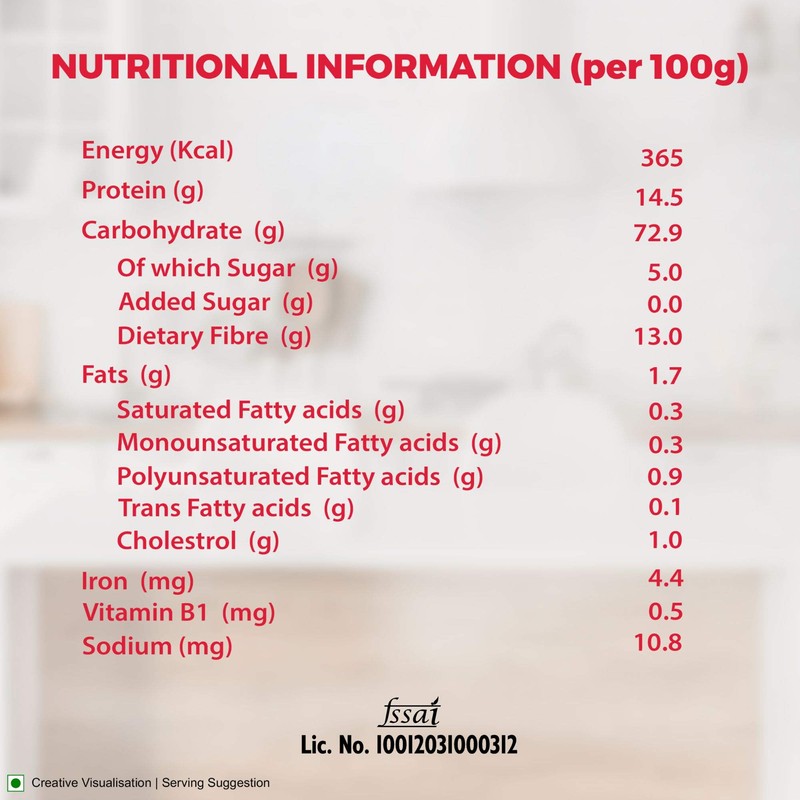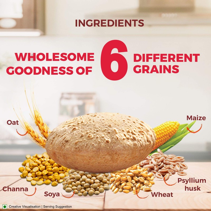 - Atta with multi grains: Wheat, Soya, Channa, Oat, Maize, Psyllium Husk.