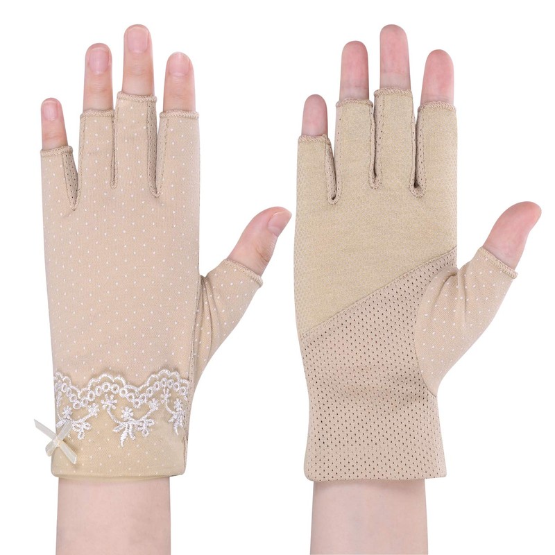 - Fashion and very cute women's gloves. Thin summer gloves with beautiful floral lace design on the wrist and breathable mesh material on the back
