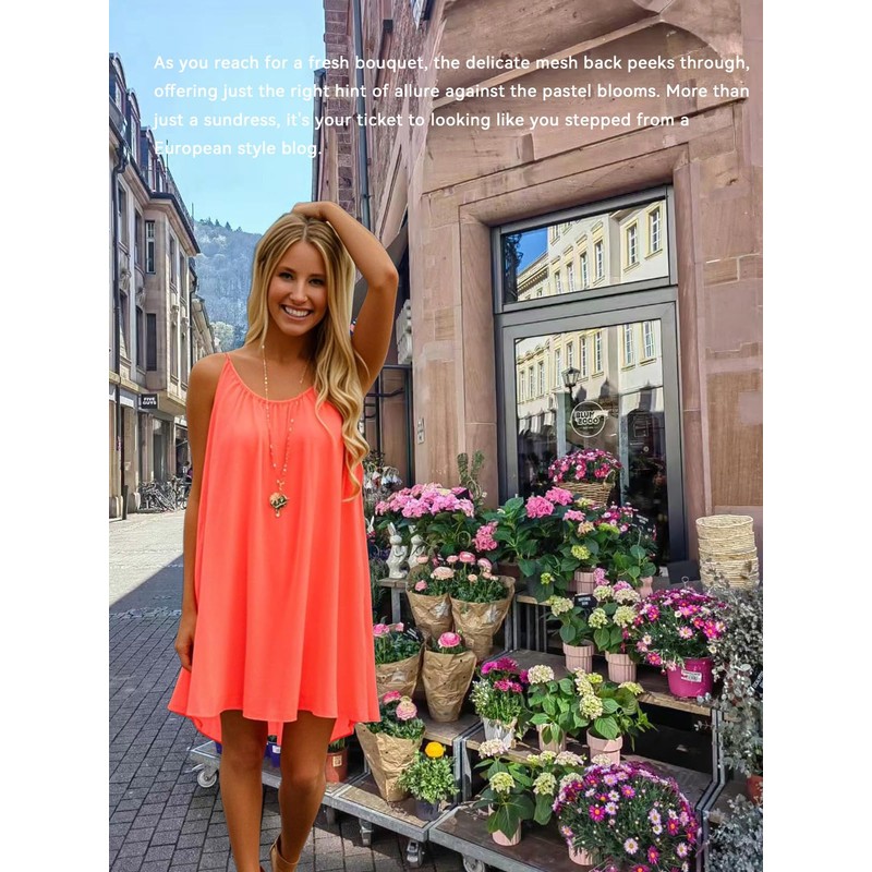 iToolai Women Summer Casual Sundresses Chiffon Beach Shift Dress(Bright Coral,M)