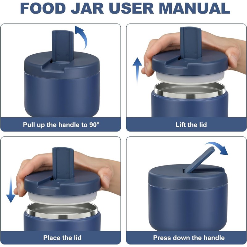 - [Buckle Structure Cover]: Our warming containers are pressure sealed. Simply pull the handle to 90° to open the lid. This is very child-friendly and children can easily open it with their little hands.