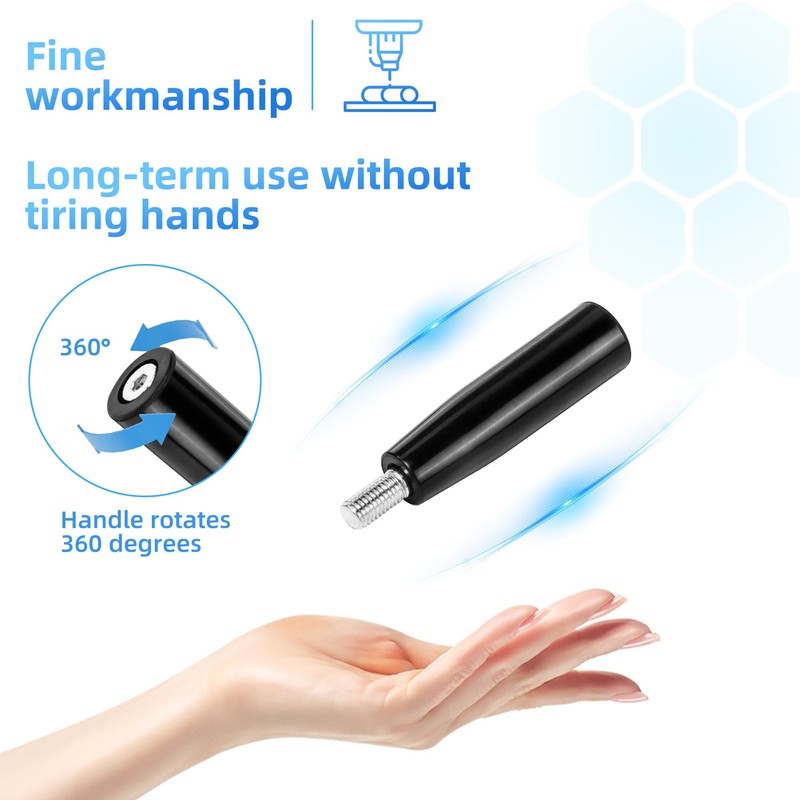 - EXQUISITE APPEARANCE & FINE THREAD After mirror polishing, the surface gloss and texture of bakelite handle are improved. The handle can be freely rotated 360 degrees. The design is ergonomic and can be operated for a long time without fatigue. The screw is chrome plated, rust-proof and durable, and the thread is clear and even, so that the bakelite handle is balanced force, not easy to slip