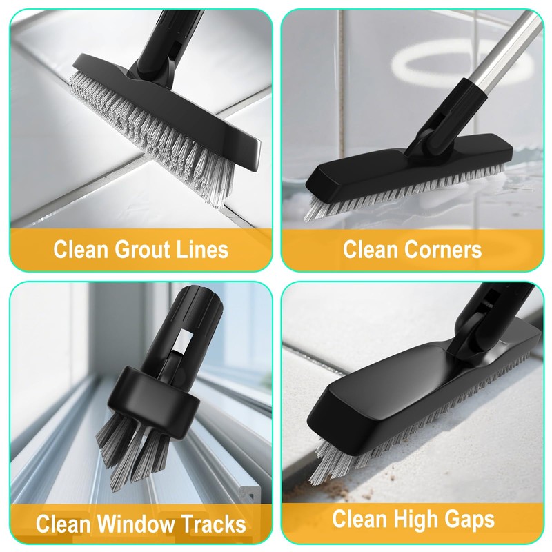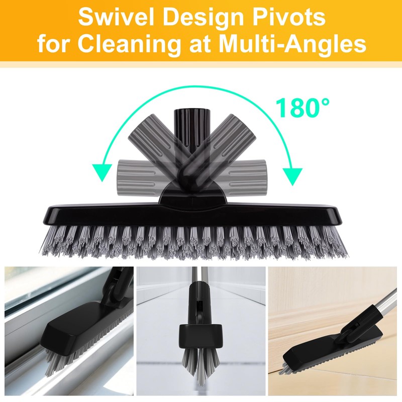 - Swivel Design Scrub Brush: This tile grout cleaner head adopts swivel design, meets lots of different angle demands. It can rotate to the best angle when you clean, do not need to bend over or squit down to clean the under of funiture or other hard-reach areas, save your back and knees