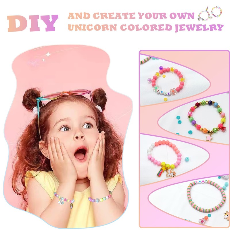 - Unbox Creative Surprises "Discover magical surprises with this unicorn party favors themed set! Unboxing feels like finding hidden treasure, complete with craft pearls, suns, flowers, and assorted silicone letter beads to spark endless creativity. Make 50+ unique bracelets, necklaces, and keychains – the perfect screen-free activity to ignite kids' imagination through hands-on fun!"