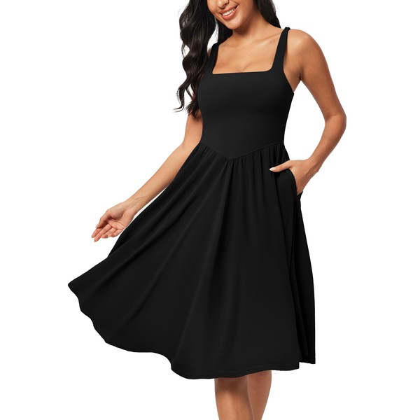 IUGA Sundresses for Women 2025 Summer Dress with Built in Shorts & Bra Spaghetti Strap Midi Casual Flowy Beach Dresses Black